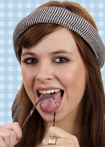 Die Giftstoffe, die sich über Nacht auf der Zungenwurzel abgelagert haben - in erster Linie Schwefelverbindungen - behindern die Atmung und schaffen üblen Mundgeruch. Deshalb sollte sie täglich abgeschabt werden. Dafür haben wir für Sie spezielle Zungenschaber aus Metall. Sie reinigen nicht nur gründlich die Zunge, sondern aktivieren auch die Speicheldrüsen und beleben den Hals.
